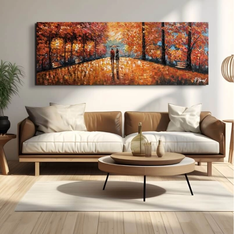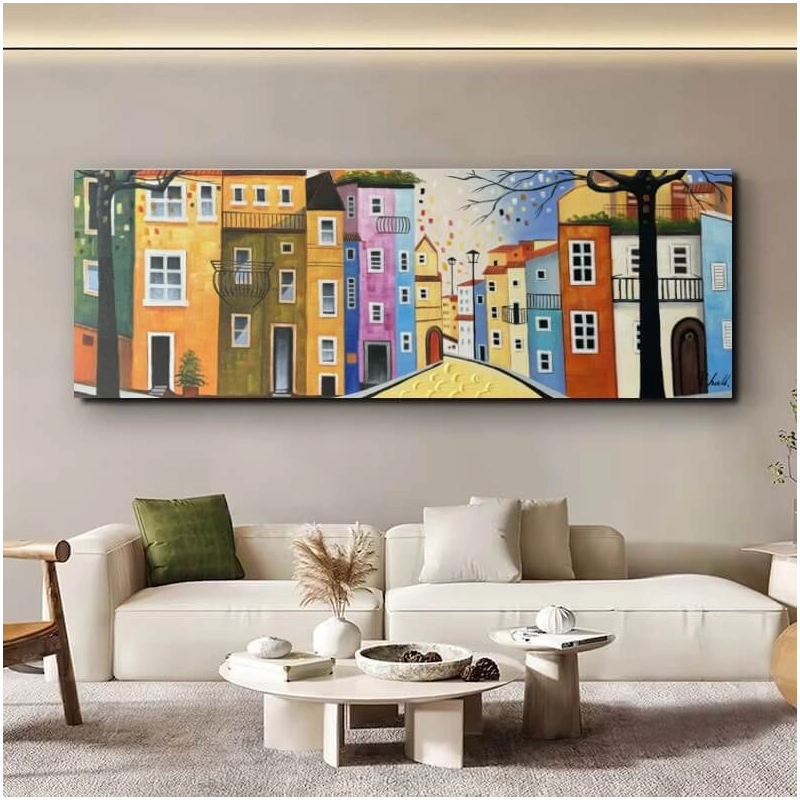 For eksempel, hvis du har et veldig fargerikt hjem, vil et maleri i litt mørkere og enklere farger sannsynligvis være å foretrekke, mens hvis du har et hjem uten mye farge - ja, da vil det naturlige valget absolutt være et moderne maleri med mange sterke og kraftige farger.