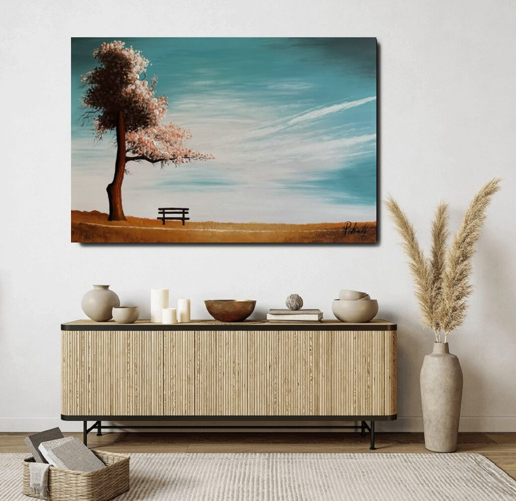 Dette er et håndmalt oljemaleri, som av mange regnes som den klassiske formen for maling. Dette gir en god dybde i fargene. Maleriet sendes gratis med GLS/Bring til nærmeste postkontor/Post i butikk. Maleriet er spent ut på en ca. 3,3 cm tykk blindramme - og er klart til å bli hengt på veggen med det samme du får det.