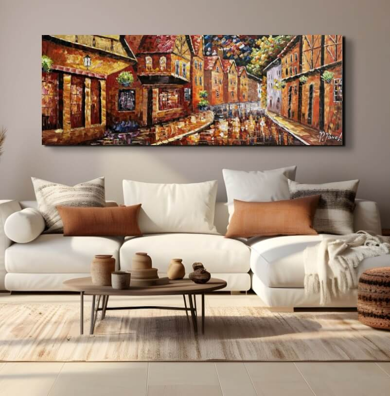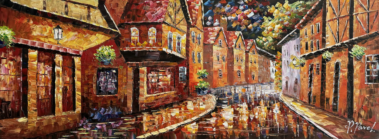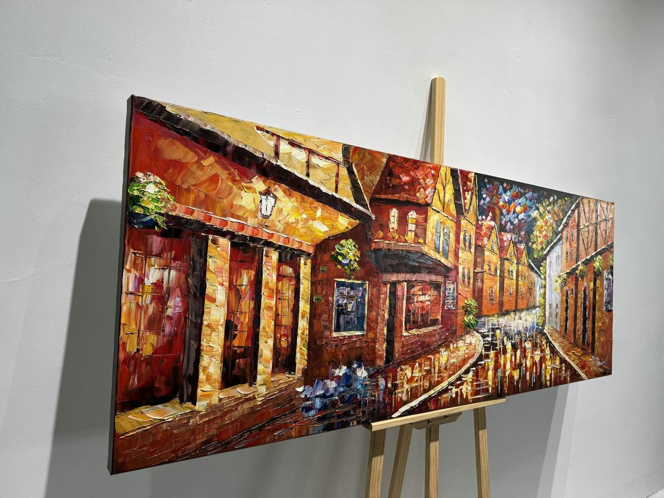 Dette er et håndmalt oljemaleri, som av mange regnes som den klassiske formen for maling. Dette gir en god dybde i fargene. Maleriet sendes gratis med GLS/Bring til nærmeste postkontor/Post i butikk. Maleriet er spent ut på en ca. 3,3 cm tykk blindramme - og er klart til å bli hengt på veggen med det samme du får det.