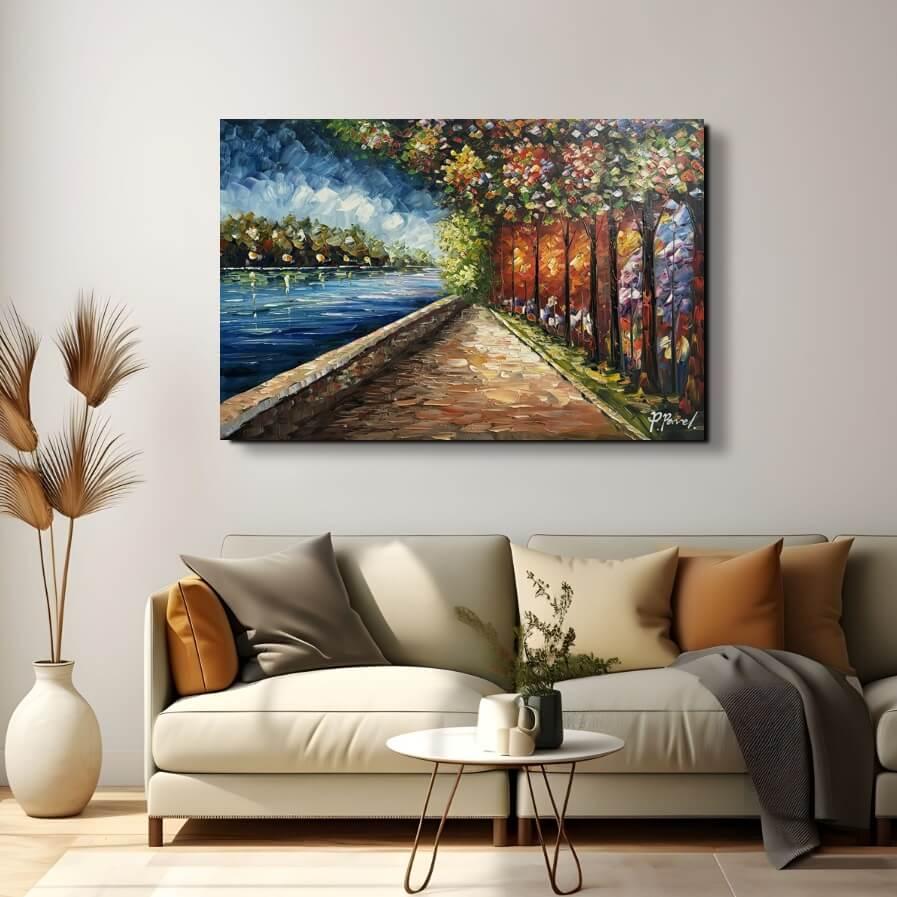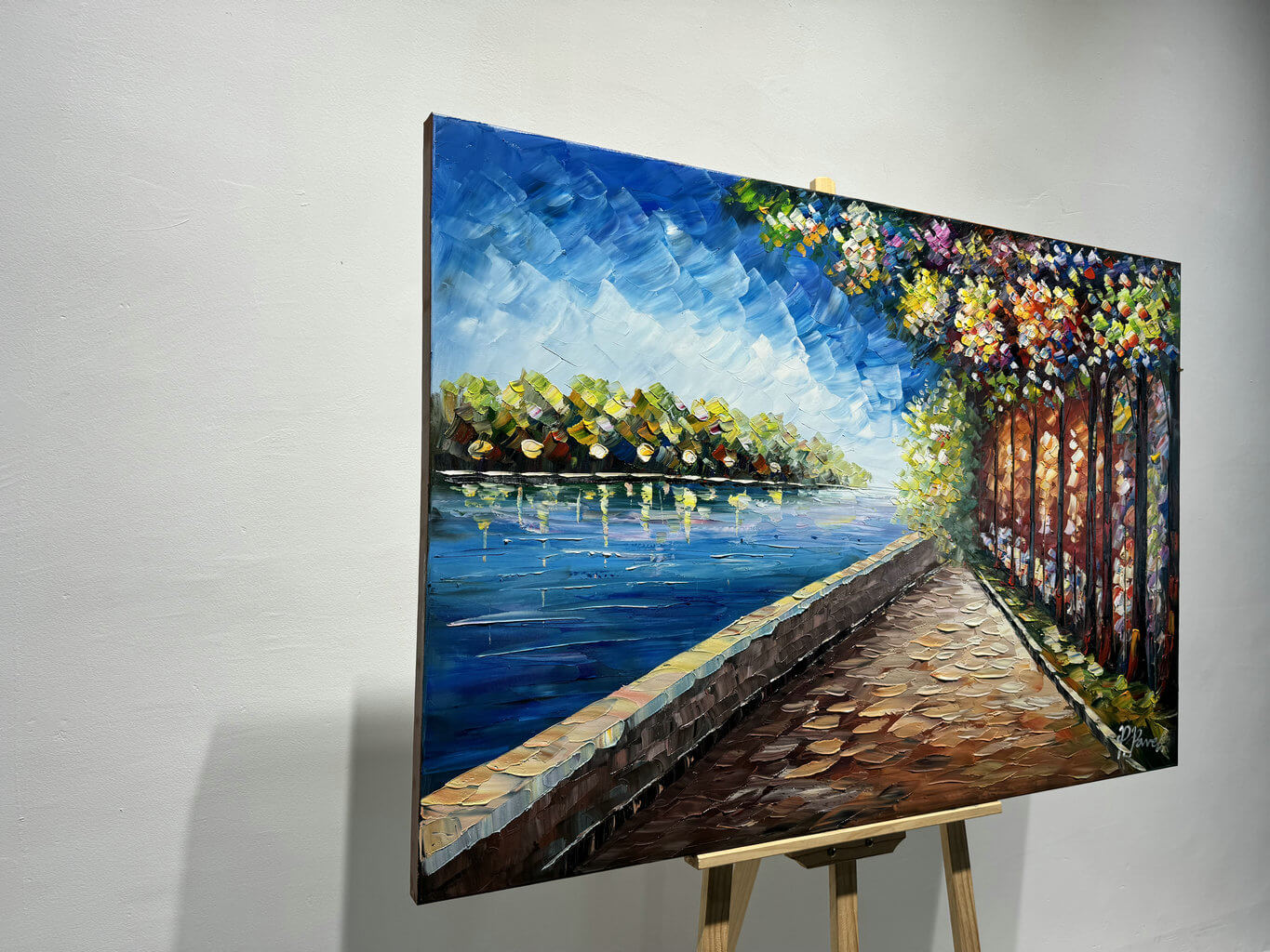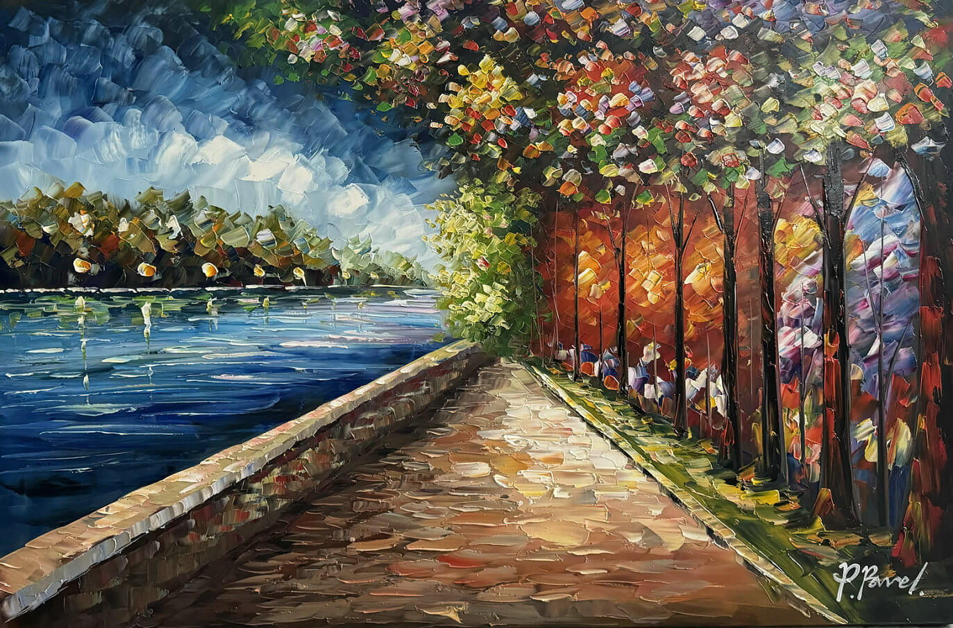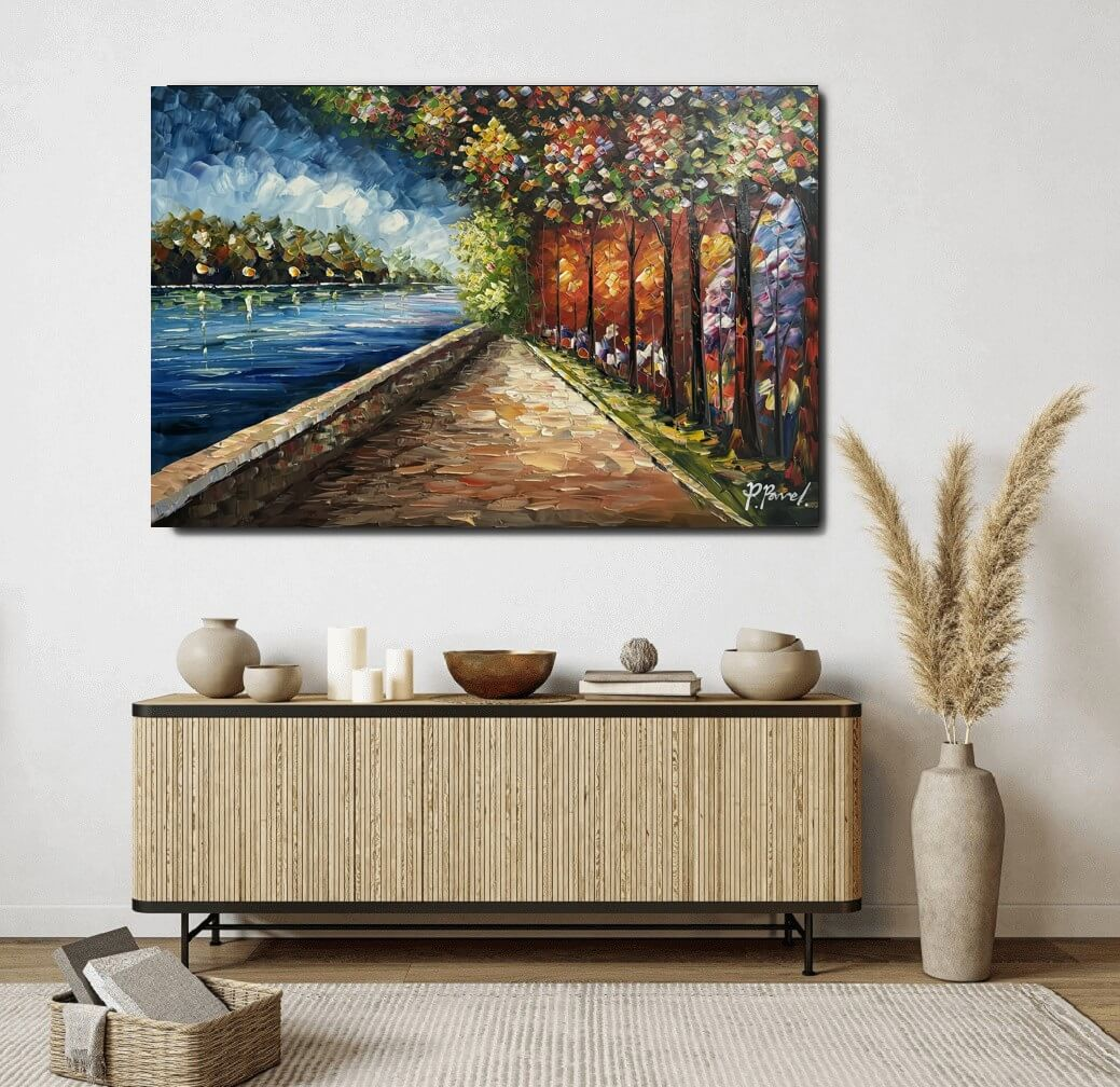 Dette er et håndmalt oljemaleri, som av mange regnes som den klassiske formen for maling. Dette gir en god dybde i fargene. Maleriet sendes gratis med GLS/Bring til nærmeste postkontor/Post i butikk. Maleriet er spent ut på en ca. 3,3 cm tykk blindramme - og er klart til å bli hengt på veggen med det samme du får det.