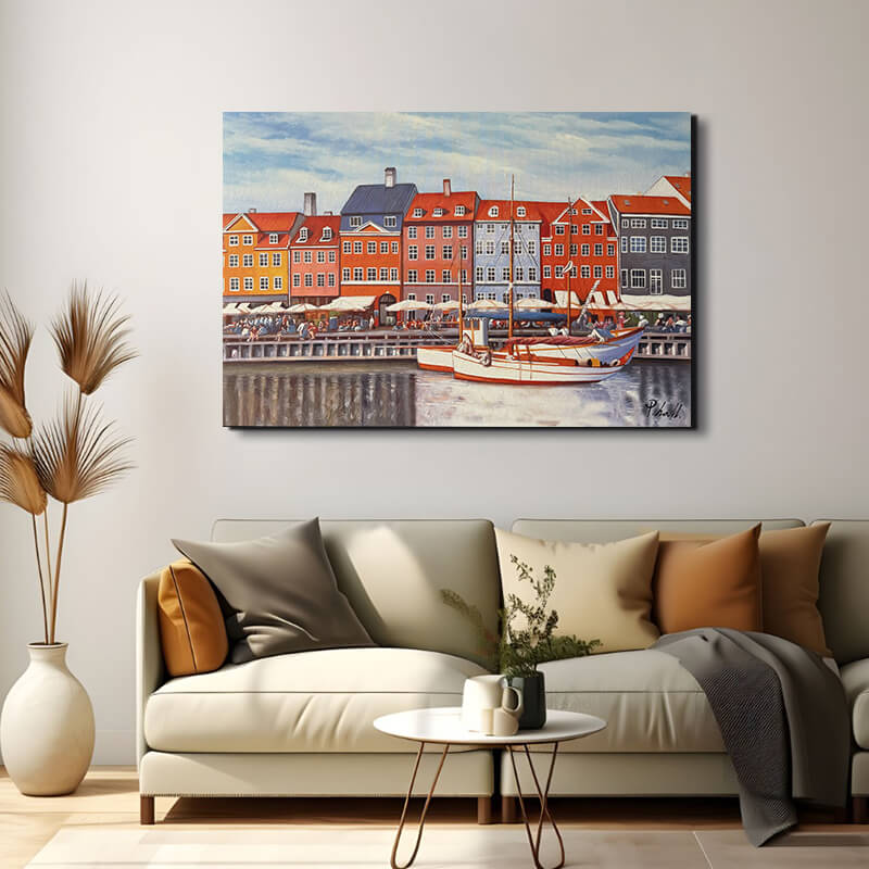 Dette er et håndmalt oljemaleri, som av mange regnes som den klassiske formen for maling. Dette gir en god dybde i fargene. Maleriet sendes gratis med GLS/Bring til nærmeste postkontor/Post i butikk. Maleriet er spent ut på en ca. 3,3 cm tykk blindramme - og er klart til å bli hengt på veggen med det samme du får det.